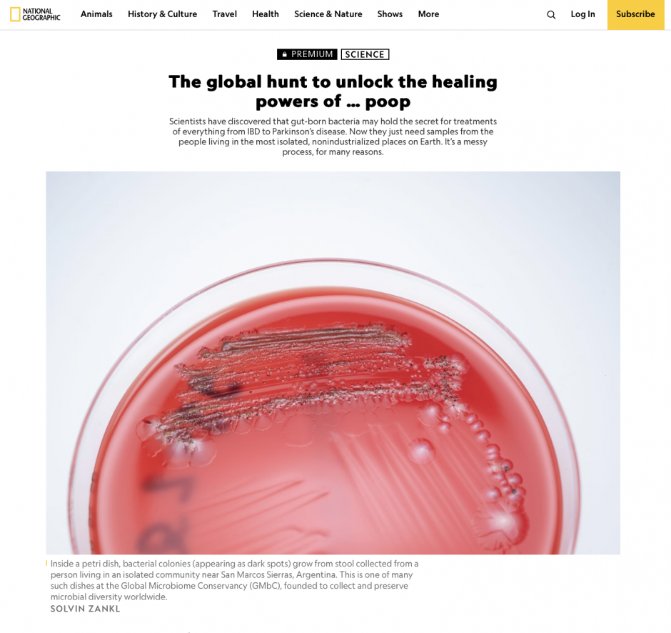 To illustrate a story on the role of bacteria from human guts as a source of treatments for a variety of illnesses, National Geographic asked me to visit researchers and document their samples. Click on the image below to read the story online!